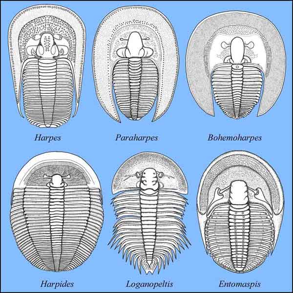 Dolichoharpes, Dubhglasina, Eoharpes, Harpes, Hibbertia, Lioharpes, Metaharpes, Paraharpes, Scotoharpes, Selenoharpes Familie Harpididae: Fissoharpes, Harpides, Loganopeltis, Loganopeltoides