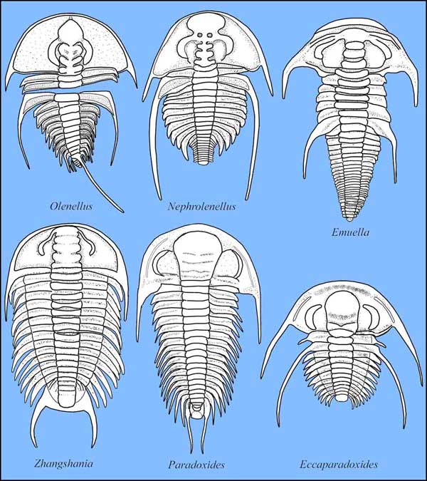 - Pygidium: sehr variabel, aber vorwiegend klein, meist deutlich gefurcht, gelegentlich bestachelt (Olenina)